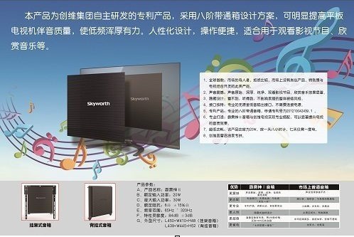 音箱专为创维电视“量身定做”谈起这套软件,刘小榕就像谈起自己的孩子一样兴奋不已,他在电脑上向记者展示,将频率固定在50赫兹和120赫兹之间,箱体、喇叭的参数等一目了然。有了软件,箱体的设计简单了很多,这样制作的音箱声音效果原始、深厚、纯净。刘小榕坦言:如果只是业余爱好,很难实际做出结构这样复杂的音箱。而在创维,有专业的结构设计、音响设计团队,一切皆有可能。对于能在创维这个平台上,把自己的业余爱好转化为被消费者认可的产品,给消费者带来实实在在的震撼体验,他感到十分欣慰。这一音箱体积又小又薄,可以安装在电视机背后的挂架上,尺寸不比原来的挂架宽,也不会增加厚度,之所以能做到这点,得益于创维近年来孜孜不倦执行的标准化策略。不喜欢挂架,可以做成“背包”背在创维电视机的背后,也不会影响电视机和家装效果的整体美观。“不想投资几万元去配置音箱,又能享受大片。”这就是刘小榕带队的小组们立志为大众打造的一款隐藏式音箱。这款音箱的结构、安装尺寸,音箱的电、声特性都是为创维中高档电视机专业打造、量身定做的。配置了创维电视2.1声道专用低音功放接口,无需另配功放、电源。目前由创维直营店独家专供,这样的音箱,使用起来有在电影院看大片一样效果!