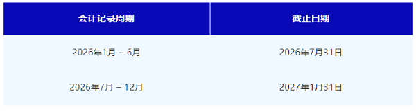 1. 半年度会计记录 (Bi-annual accounting records) – 上半年截止于七月,下半年截止于次年一月