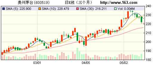 仅以贵州茅台为例,该股在5月7日创造了237.76元的以来最高价后,股价便从此连续下跌,至今日已经是连续6个交易日收跌,与最高市值2473亿元相比,至今日茅台已经蒸发了162亿元的市值。