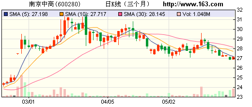 经过长达3个月的高位震荡后,南京中商股价近期开始向要约收购价(27元/股)逐步“靠拢”,且围绕该价位呈现出上下震荡的走势。以昨日为例,公司股价以26.88元开盘后不久即被买单推至27元上方,收盘小涨1%报于27.17元。而在此前一日,公司股价则逆势下跌1.47%收于26.90元。
