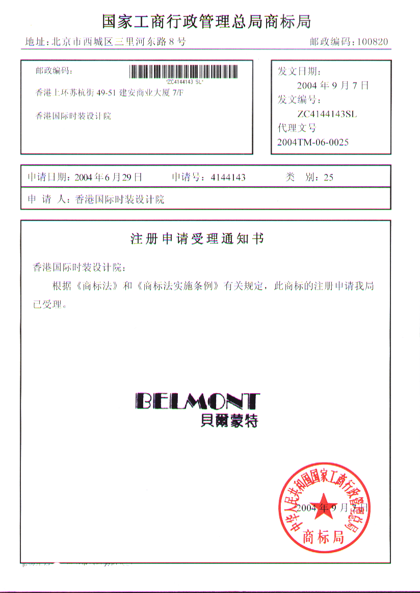 商标注册名称:BELMOT(贝尔蒙特)